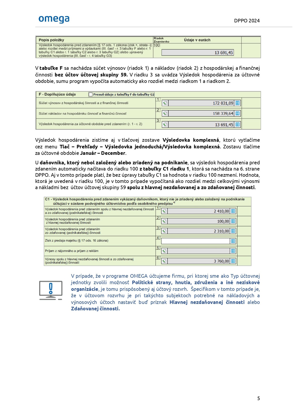 2.1. Načítanie údajov do daňového priznania v OMEGE