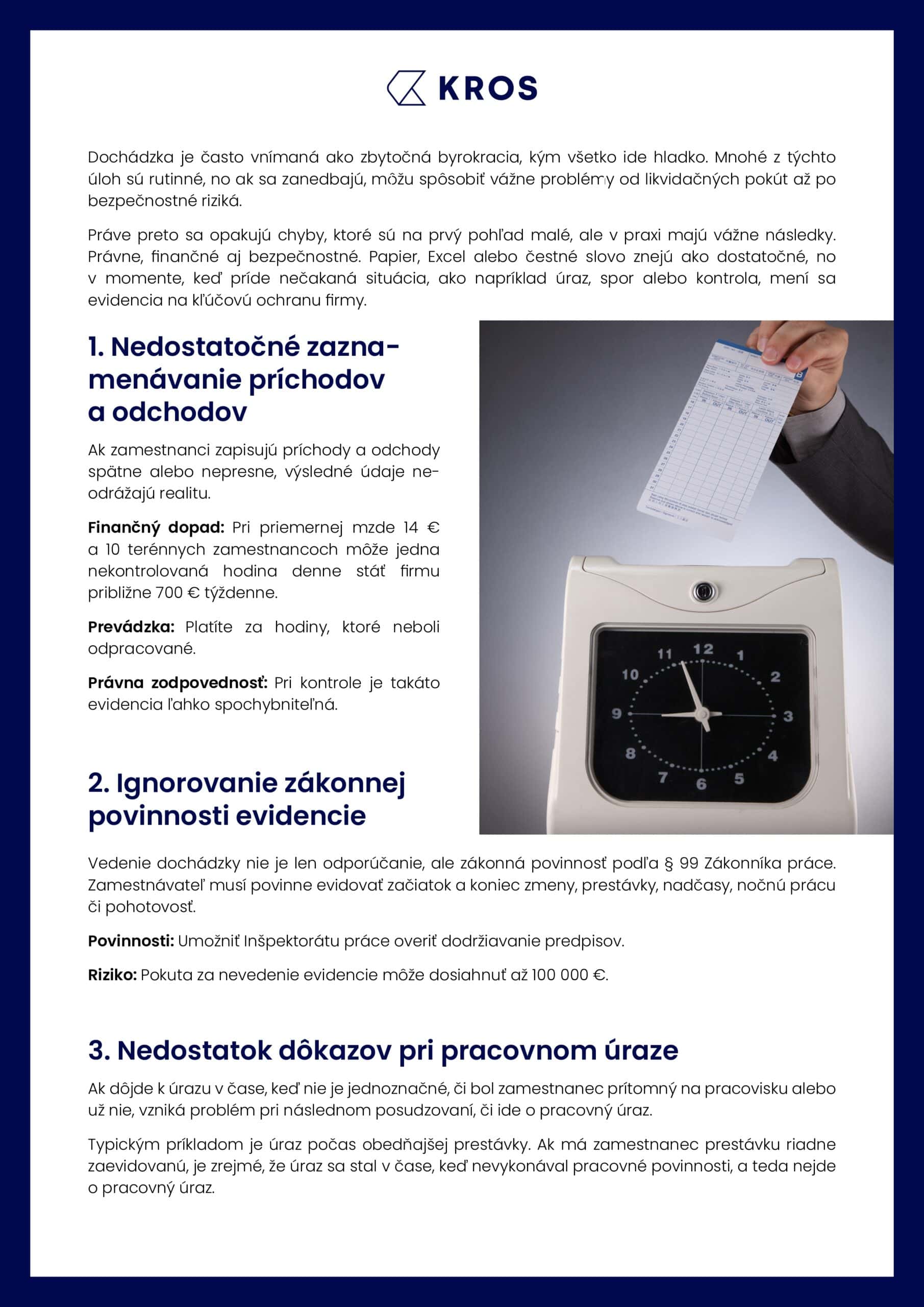 Dochádzka pod kontrolou – 15 rizík, ktoré firmy často prehliadajú