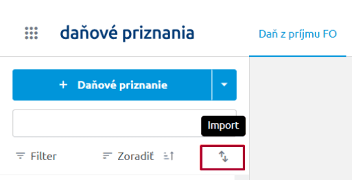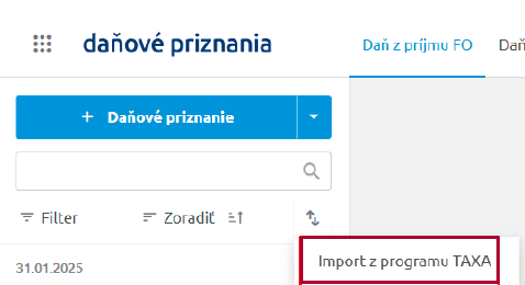 Klikneme na ikonu obrátených šípok naľavo hore a zvolíme Import z programu TAXA.