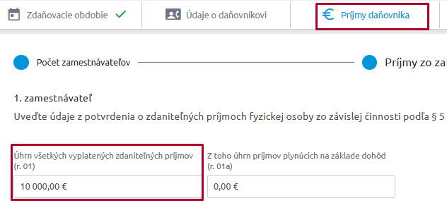 Ak príjmy nevyplníte, alebo podmienku 90 % nesplníte, možnosť uplatniť daňový bonus sa v aplikácii nezobrazí.