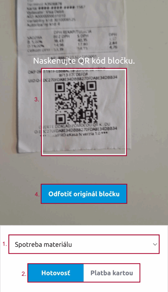 Sprístupní sa možnosť Odfotiť doklad a bloček odfotíme. V prípade potreby môžeme zachytený snímok pred uložením ešte orezať.