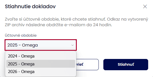 Následne sa zobrazí možnosť pre zvolenie účtovného obdobia, za ktoré chceme prílohy z digitálneho archívu uložiť.