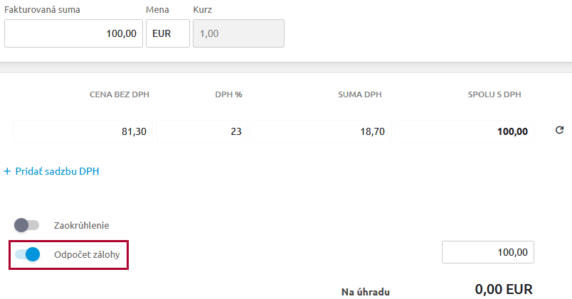 - Odpočet preddavku