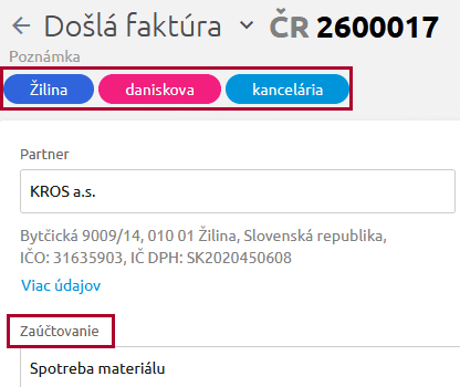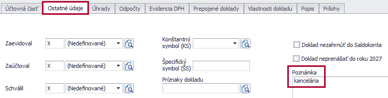 - Ak program zhodu nenájde, názov štítku uvidíme na danom doklade v záložke Ostatné údaje v časti Poznámka.