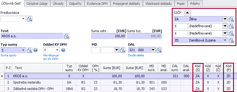 - Ak program nájde zhodu v číselníkoch, priradí ich do správnej bunky pre SZČP v účtovnom zápise.