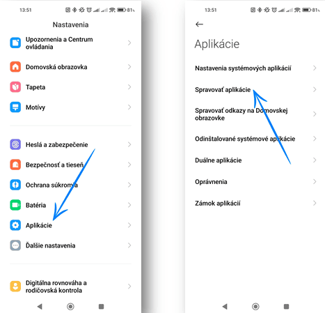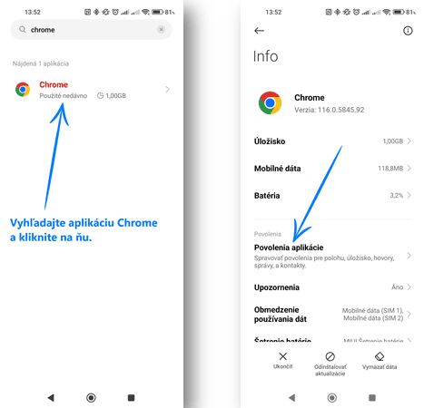 – Zmena povolení aplikácie v telefóne s Androidom.