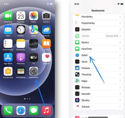 V mobilnom telefóne prejdeme do Nastavenía vyhľadáme aplikáciu Safari. Klikneme na ňu. Následne zvolíme voľbu Kamera a povolíme prístup webovým stránkam ku kamere (fotoaparátu) zariadenia.