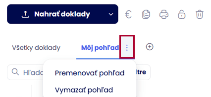 Po vytvorení nového pohľadu sa zobrazí ikona s tromi bodkami, cez ktorú môžeme pohľad premenovať alebo v prípade potreby aj vymazať.