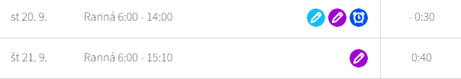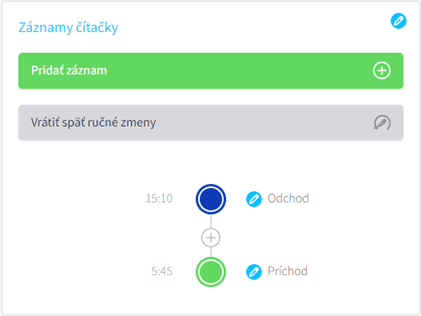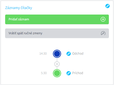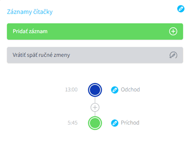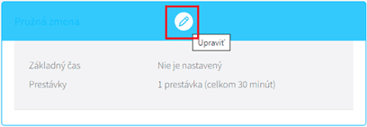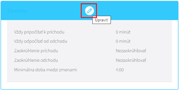 Pri každej pracovnej skupine následne môžete nastaviť jednotlivé príplatky za víkendy alebo sviatky, automatické pripočítavanie času k záznamu z čítačky každého zamestnanca a tiež zaokrúhlenie. Záznamy z čítačky upravíte pomocou myši v časti Záznamy. Ak sa myšou nastavíte na Záznamy, zobrazí sa možnosť Upraviť (ceruzka), ktorú si zvolíte.