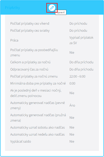 Príplatky upravíte nastavením sa myšou na Príplatky, kde sa Vám sprístupní možnosť Upraviť (ceruzka), ktorú si vyberiete.