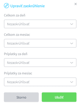 V detaile zaokrúhlenia je v rozbaľovacom okne možnosť zvoliť, ako sa daný deň, mesiac a príplatky majú zaokrúhľovať.