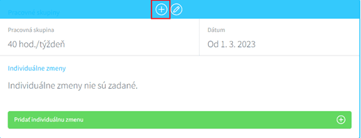 Kliknite na zamestnanca, ktorému chcete zmeniť alebo pridať pracovnú skupinu, a v detaile zamestnanca nájdete možnosť Pracovná skupina. Novú pracovnú skupinu zamestnancovi pridáte nastavením sa myši na časť Pracovná skupina, kde sa sprístupní tlačidlo +.