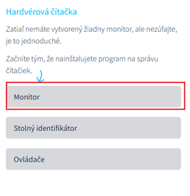 Ak ešte nemáte stiahnutý program Monitor, ktorý slúži na správu čítačiek, prístupových kontrolérov a terminálov, tak ich stiahnete na karte Nastavenia v pravej časti menu Hardvérová čítačka. Kliknutím na možnosť Monitor sa Vám inštalačný program stiahne do Vášho počítača.