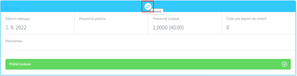 Keď prejdete myšou na Úväzok, sprístupní sa Vám tlačidlo Upraviť, cez ktoré si otvoríte evidenciu pracovných vzťahov.