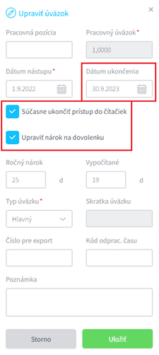 Zamestnancovi pre ukončenie pracovného vzťahu stačí zadať dátum ukončenia.