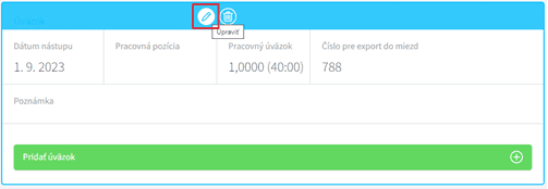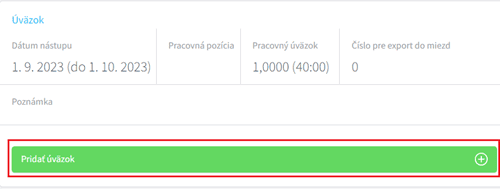 Po ukončení existujúceho úväzku budete môcť vytvoriť nový úväzok tlačidlom Pridať úväzok.