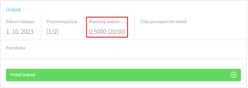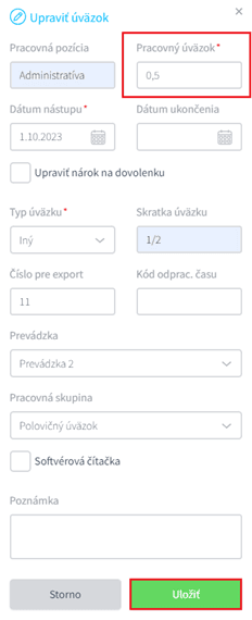 Po uložení v údajoch zamestnanca uvidíte nový polovičný úväzok.