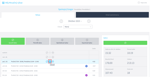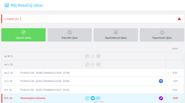 To, že je výkaz uzatvorený vidíte tak, že na výkaze daného zamestnanca je vidieť tlačidlo palca, pečiatky alebo exportu.