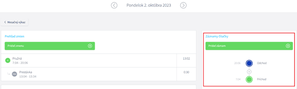 V detaile dňa vidíte na pravej strane časť Záznamy čítačky. Ak tu záznamy sú, dochádzkové čítačky dáta odosielajú a príčina je niekde inde.
