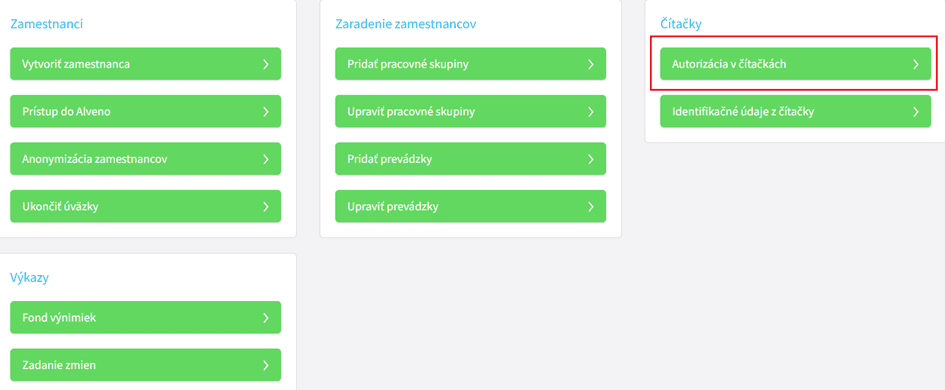 Zvoľte si sekciu Čítačky a ďalej kliknite na možnosť Autorizácia v čítačkách.