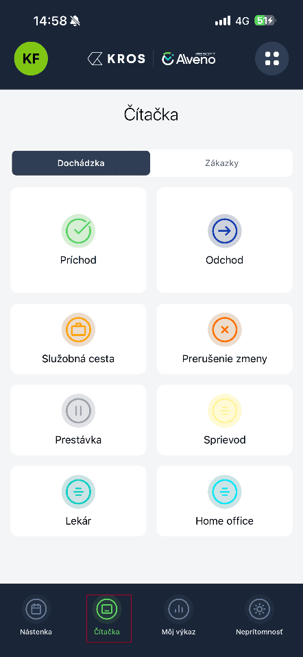 Na Čítačke viete zaznamenávať príchody a odchody do práce, prípadne ďalšie prerušenia, ktoré v spoločnosti používate. Prostredníctvom mobilnej čítačky si viete zaznamenávať aj prácu na zákazkách.