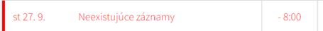 Pokiaľ si zamestnanec vezme na celý deň náhradné voľno, KROS Dochádzka v tomto dni napíše „neexistujúce záznamy“ a čaká na vaše rozhodnutie, čo zapíšete.