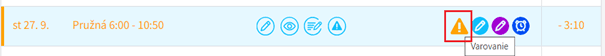 Toto novo vytvorené Náhradné voľno zo salda potom môžete zadávať do výkazu a všetko bude fungovať tak, ako má. Po pridaní do výkazu sa zobrazí oranžový trojuholník s výkričníkom (Varovanie), aby ste daný deň skontrolovali.