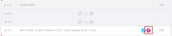 Pokiaľ má zamestnanec nadčas, tak vo výkaze je táto hodnota v každom dni označená príznakom.