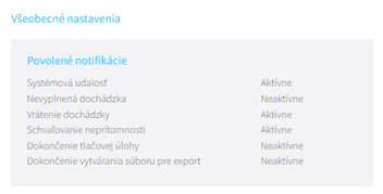 Akonáhle vedúci rozhodne, zamestnancovi príde upozornenie, či neprítomnosť bola schválená alebo zamietnutá. Všetky upozornenia si môžete nastaviť na karte Nastavenia v na pravej strane v časti Všeobecné nastavenia.
