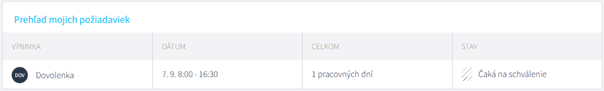 Pod kalendárom uvidíte prehľad všetkých svojich požiadaviek a taktiež vidíte, v akom stave požiadavka je.