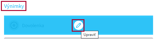 Na karte Nastavenia nájdete zoznam výnimiek. Nastavíte sa na výnimku, ktorú chcete plánovať (napr. dovolenku, darovanie krvi,..) a zvolíte možnosť Upraviť.