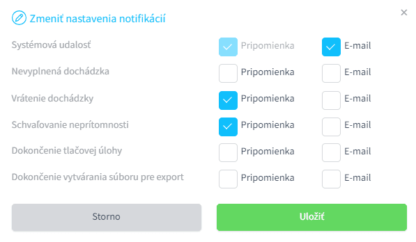 Každá notifikácia sa dá nastaviť ako pripomienka alebo e-mail.