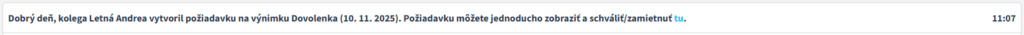 Po rozhodnutí vedúceho dostane zamestnanec upozornenie, či bola jeho neprítomnosť schválená alebo zamietnutá.