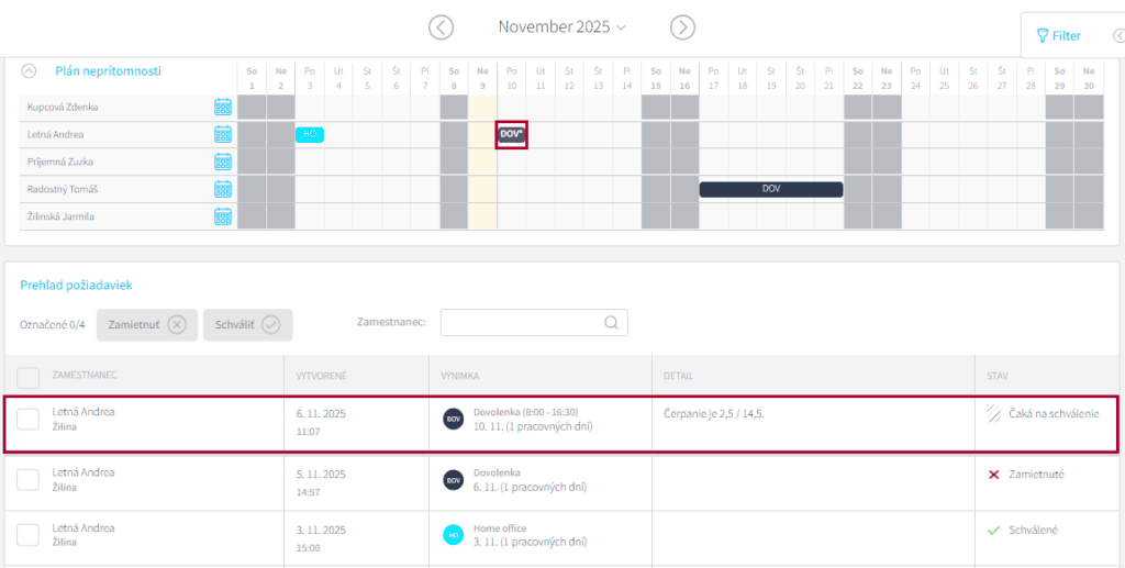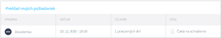 Pod kalendárom uvidíte prehľad všetkých svojich požiadaviek a taktiež vidíte, v akom stave požiadavka je.