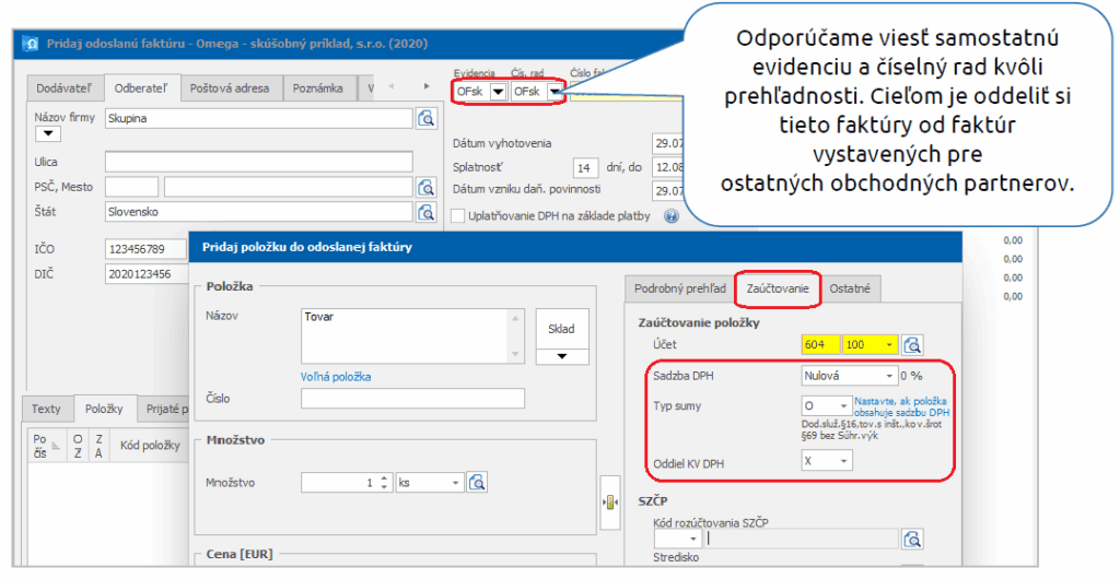 - Faktúry vystavené vnútorne v rámci členov skupiny je potrebné evidovať: