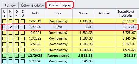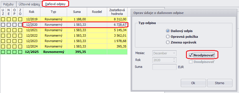 - Program Podvojné účtovníctvo OMEGA nastaví nulovú výšku daňového odpisu v roku 2020 a predĺži odpisový plán o jeden rok.
