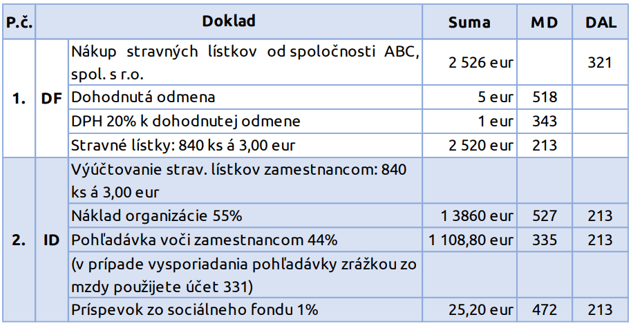 Ako zaúčtovať nákup a výdaj stravných lístkov