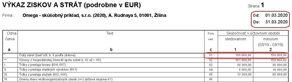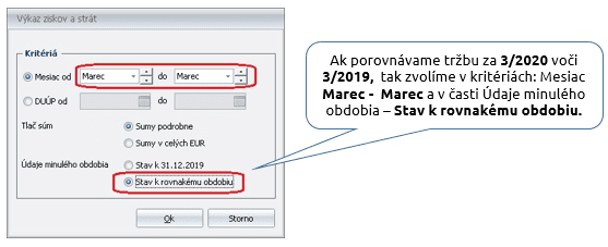 - Prípadne, pri zobrazení výkazu za obdobie od Február do Február – porovnáme tržbu za 3/2020 s tržbou za 2/2020, ak sme v 3/2019 činnosť nevykonávali.