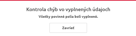 Na záver stlačíme tlačidlo Skontrolovať. Prebehne kontrola, či boli vyplnené všetky povinné polia.