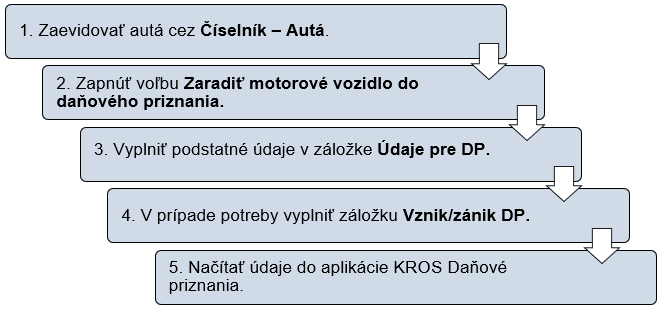 Aby program Podvojné účtovníctvo OMEGA automaticky vygeneroval daňové priznanie k dani z motorových vozidiel (ďalej DPMV), je potrebné dodržať tieto kroky: