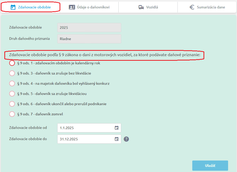 Daňové priznanie k dani z motorových vozidiel 2025