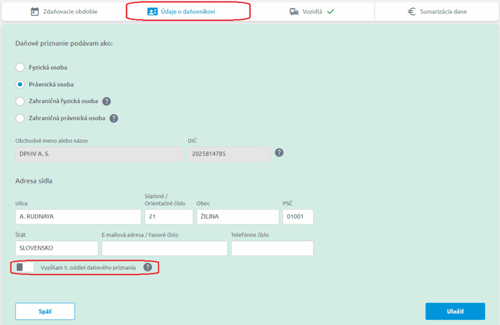 Skontrolované a vyplnené údaje potvrdíme tlačidlom Uložiť.
