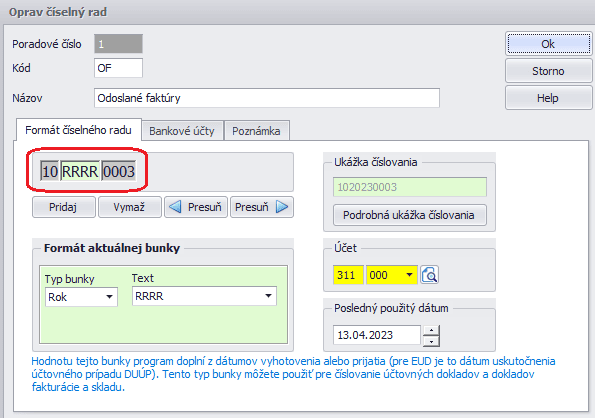 Na začiatku roka odporúčame správne nastaviť číslovanie dokladov tak, aby nevznikali duplicitné čísla. Pre zabezpečenie jedinečnosti číslovania dokladov odporúčame, aby bol vo všetkých okruhoch (OF, OD, ID, PD, DF, BV) súčasťou číslovania aj príslušný rok (RR/RRRR). Týmto spôsobom sa v budúcnosti vyhneme duplicitnému číslovaniu.