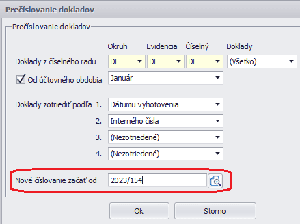 Pred zakliknutím voľby Digitálny archív je nutné skontrolovať a odstrániť duplicitné číslovanie dokladov. V opačnom prípade môže nastať situácia, že prílohy budú nesprávne pridelené. Pri hromadnom prečíslovaní je taktiež potrebné skontrolovať, od akého čísla začať číslovať, aby nevznikli duplicity.