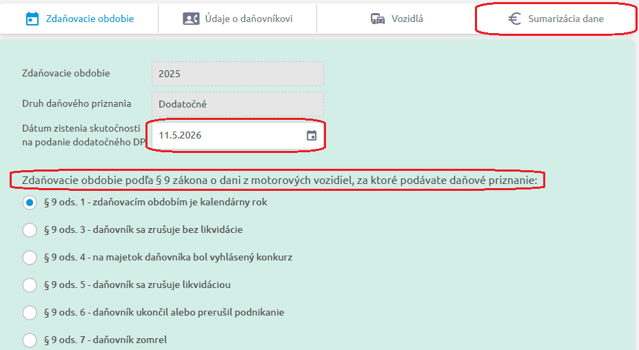 Dodatočné daňové priznanie k dani z motorových vozidiel 2025