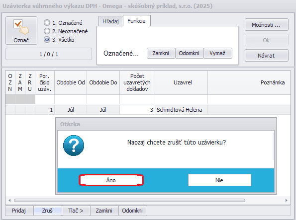 Najskôr zrušíme pôvodnú uzávierku SV DPH. Neodporúčame ju však zmazať, pretože by nebolo možné vygenerovať dodatočný SV DPH.