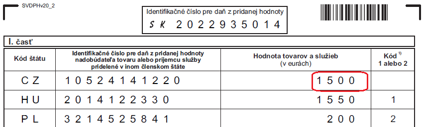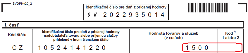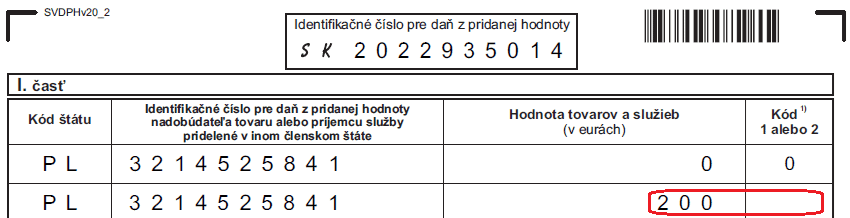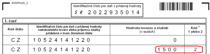 a) v riadnom SV DPH sme zadali kód (trojstranný obchod (kód 1) alebo služba (kód 2)), ale nemal tam byť (išlo o dodanie tovaru – uvádza sa bez kódu).