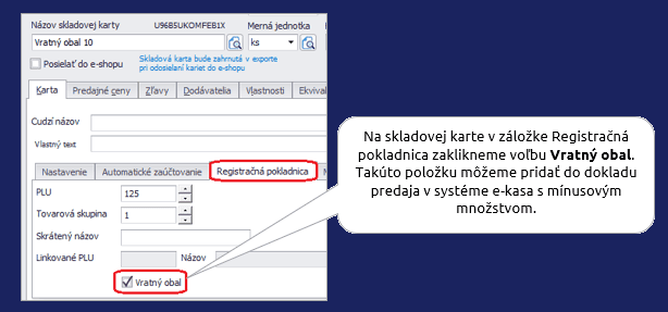 - ak je na pôvodnom doklade vratný obal v zápornej hodnote (ide o vrátenie obalu), tak pri vystavovaní pokladničného dokladu Vrátenie sa táto položka neprenáša. Je to z dôvodu, že v pôvodnom doklade nám už zákazník vrátil vratný tovar.