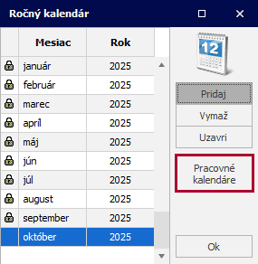 Kliknete na pole Pracovné kalendáre.