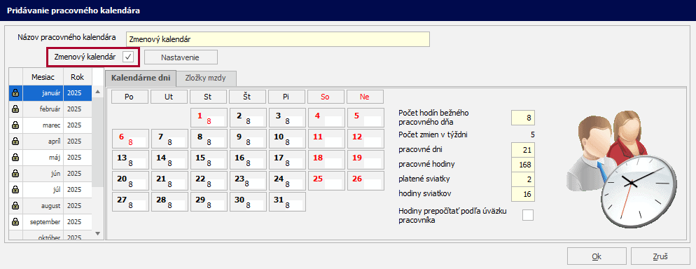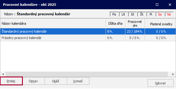Vytvorenie pracovného kalendára: